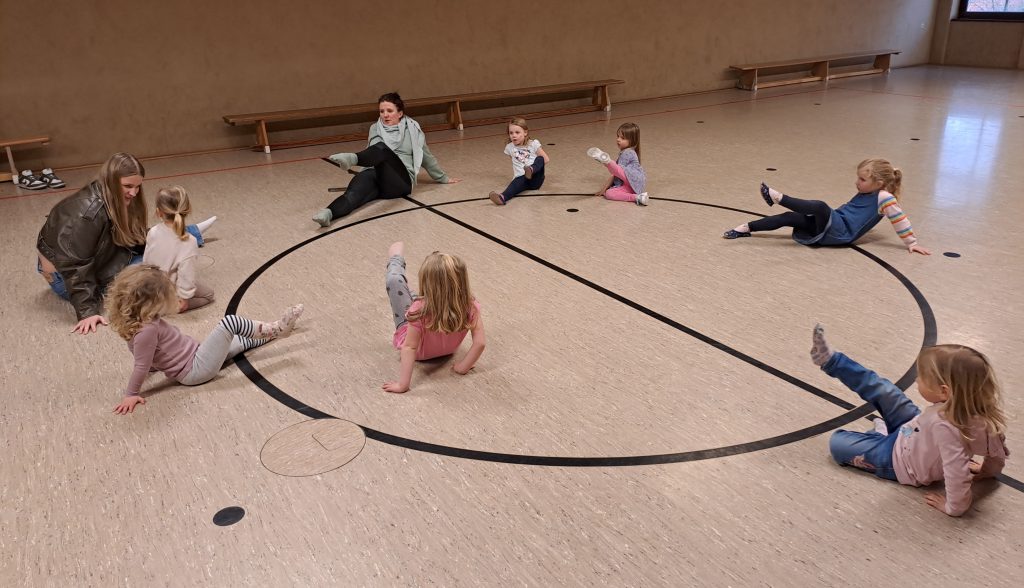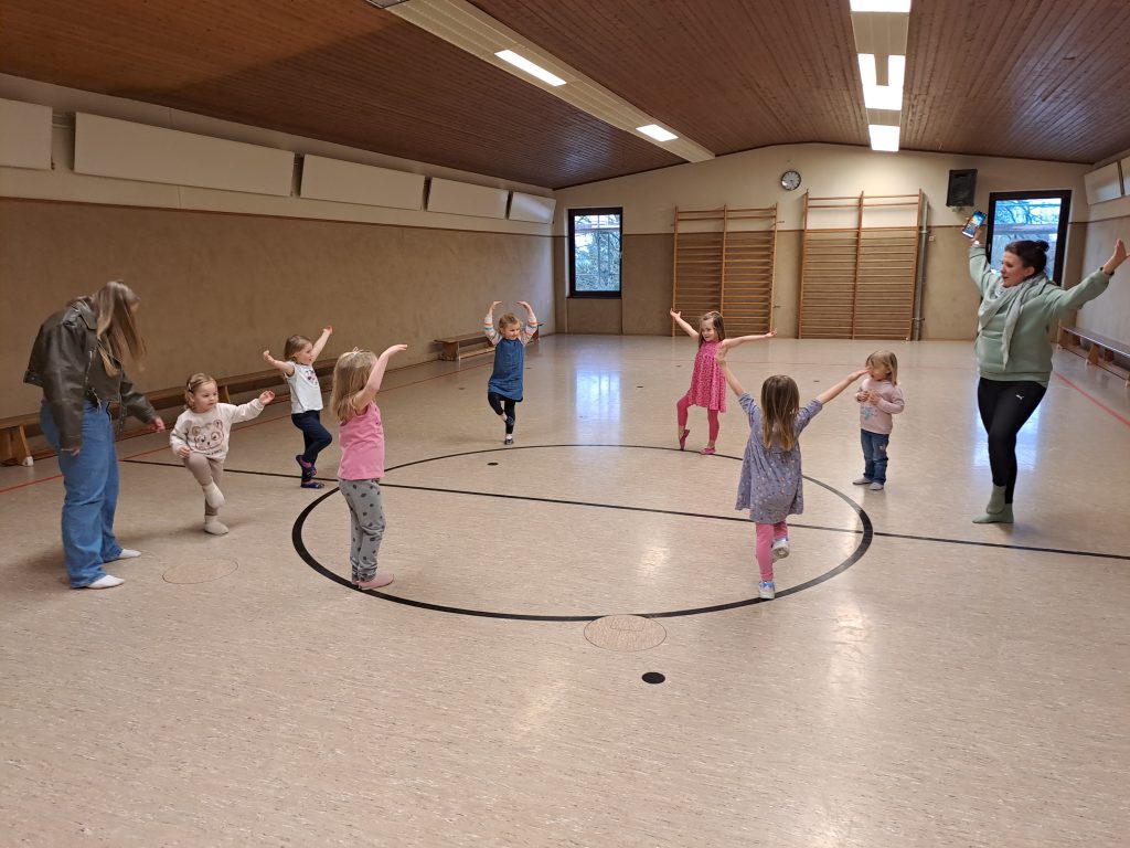 Die Tanz-Kids vom 3. bis zum vollendeten 5. Lebensjahr lernen sich zu bekannten Tanz-und Bewegungsspielen sich zu bewegen und haben viel Spaß dabei.